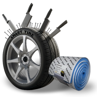 Stick-on armor that makes any tire puncture-proof in 15 minutes.